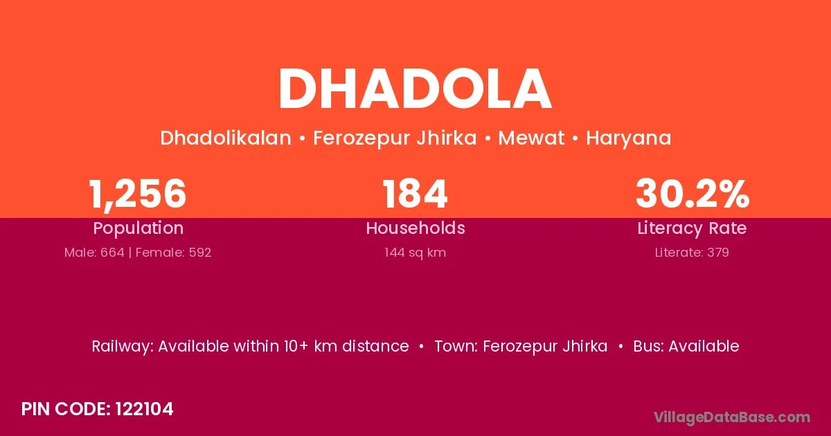 Dhadola village has a total population of 4,661 people, of which 2,503 are males and 2,158 are females.