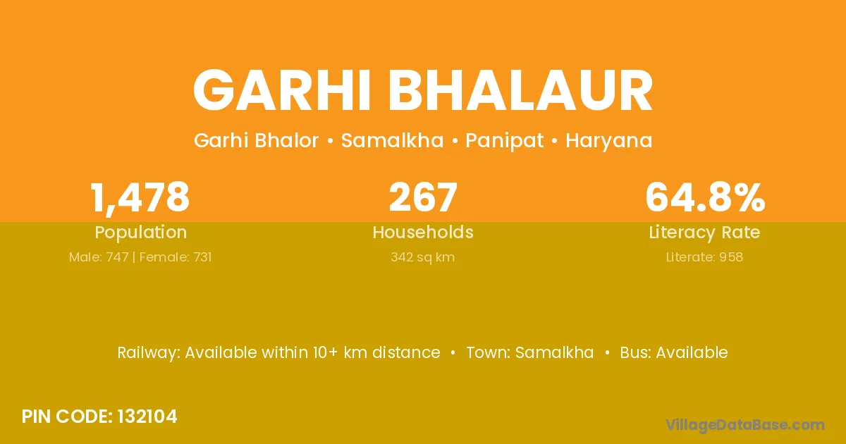 Garhi Bhalaur village has a total population of 1,478 people, of which 747 are males and 731 are females.