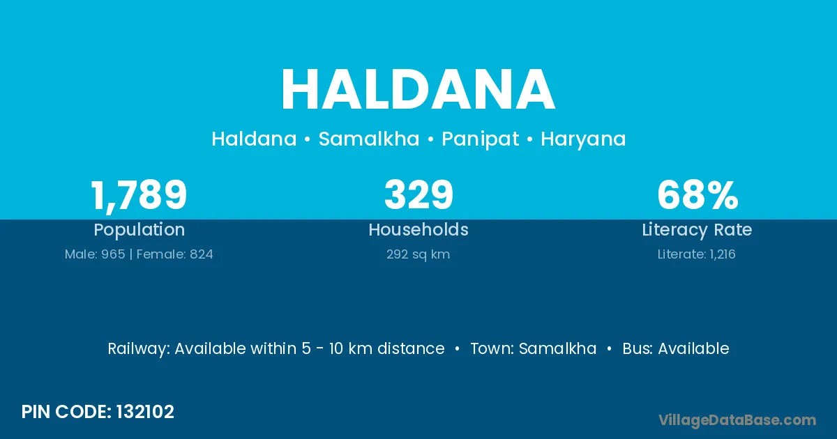 Haldana village has a total population of 1,789 people, of which 965 are males and 824 are females.