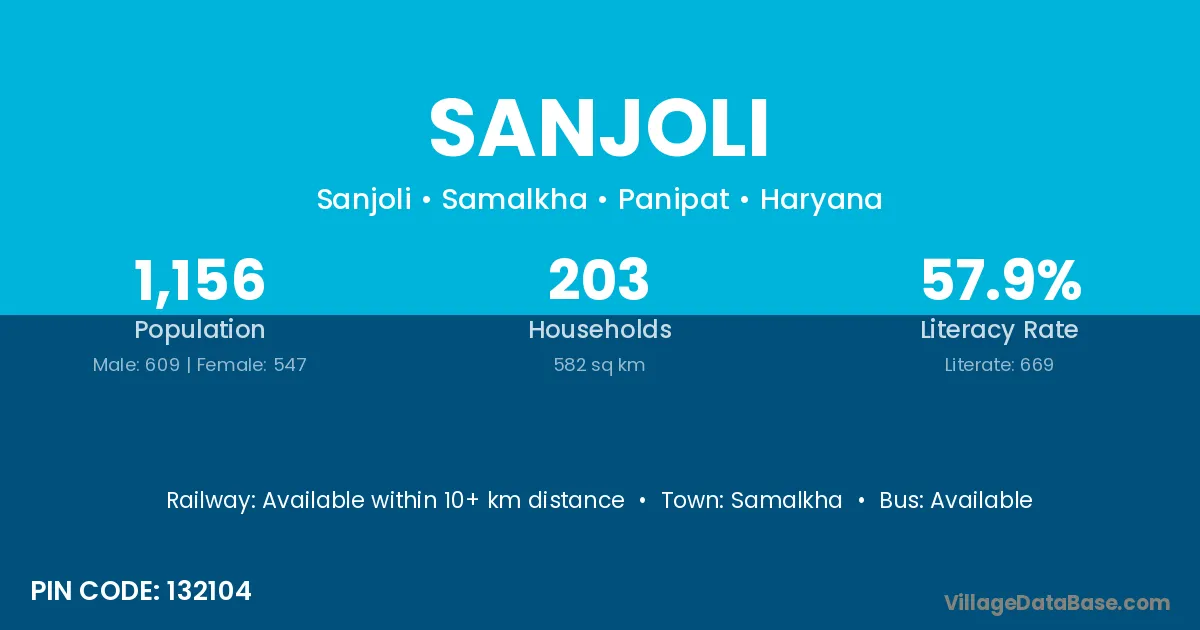 Sanjoli village has a total population of 1,156 people, of which 609 are males and 547 are females.