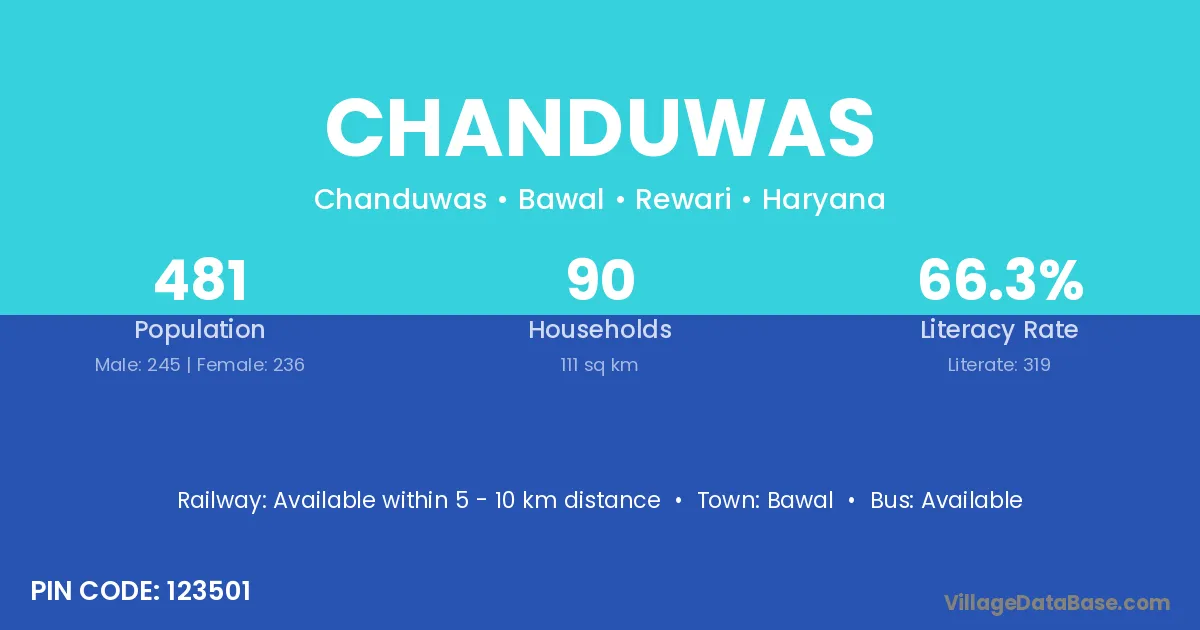 Chanduwas village has a total population of 481 people, of which 245 are males and 236 are females.