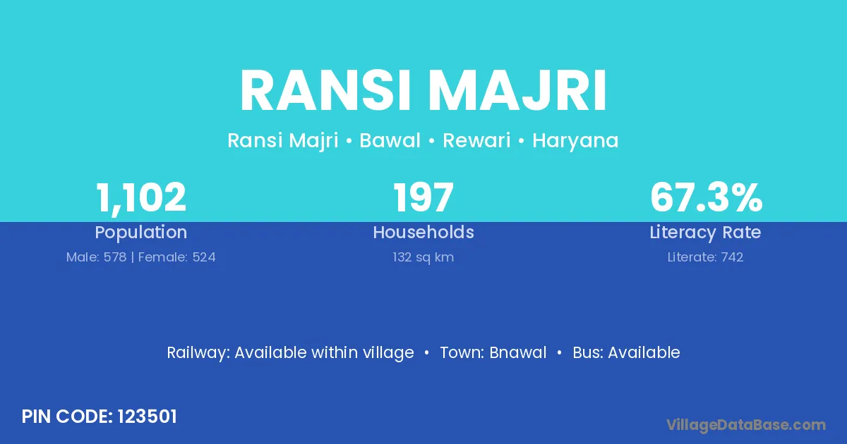 Ransi Majri village has a total population of 1,102 people, of which 578 are males and 524 are females.