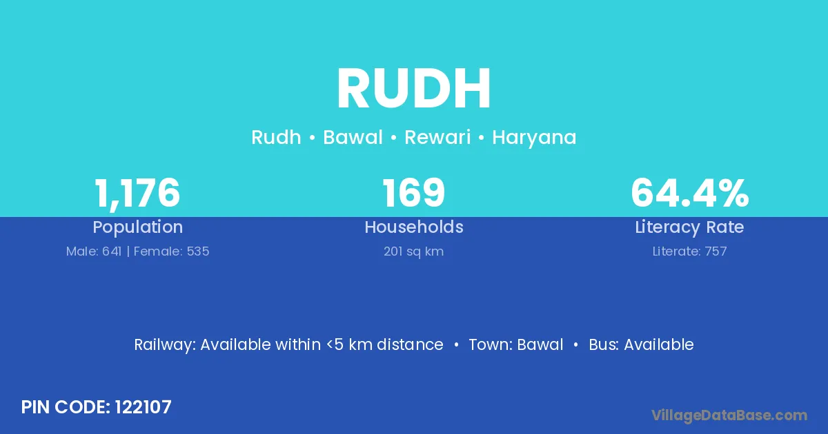 According to Census 2011 information, the village code of Rudh village is 122107.
