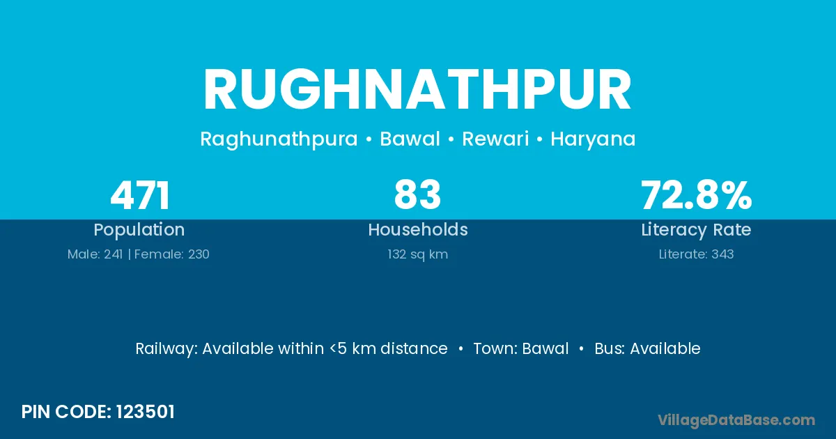 Rughnathpur village has a total population of 471 people, of which 241 are males and 230 are females.