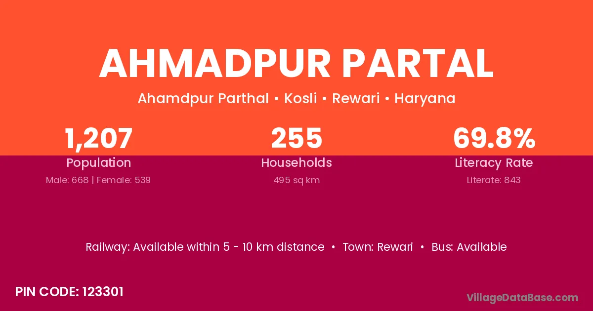 Rewari is the nearest town to Ahmadpur Partal village for major economic activities