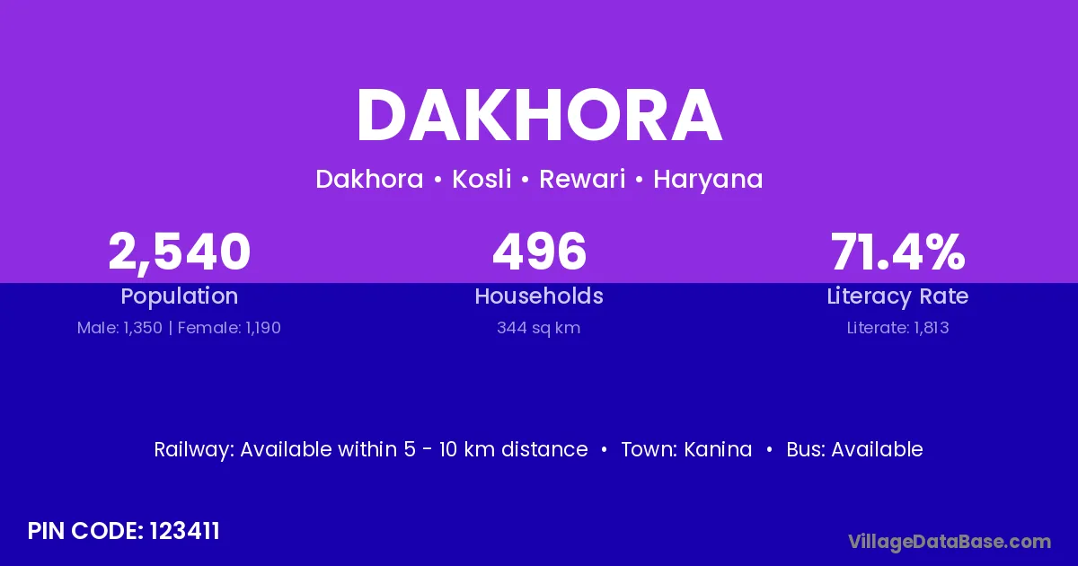 Dakhora village has a total population of 2,540 people, of which 1,350 are males and 1,190 are females.