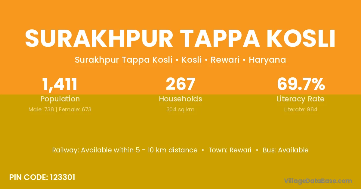 According to Census 2011 information, the village code of Surakhpur Tappa Kosli village is 123301.