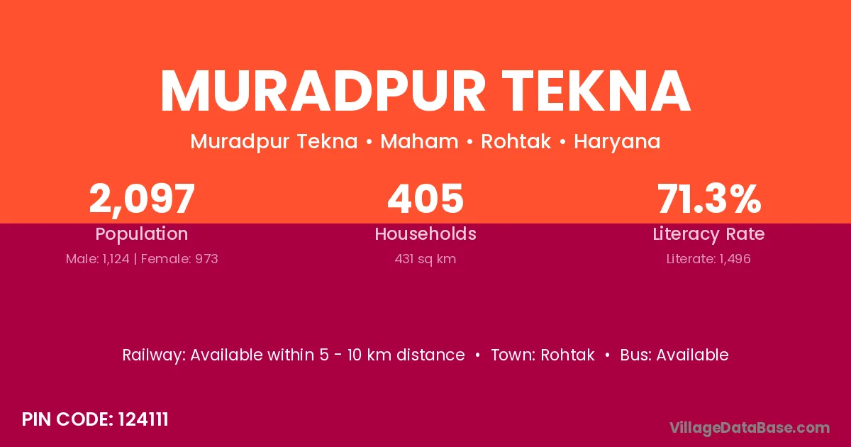 Rohtak is the nearest town to Muradpur Tekna village for major economic activities