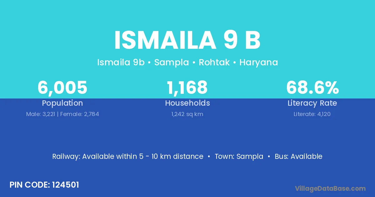 Ismaila 9 B village has a total population of 6,005 people, of which 3,221 are males and 2,784 are females.