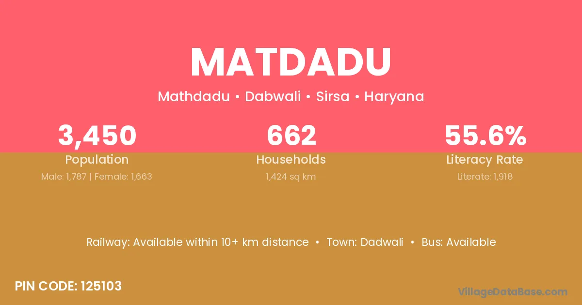 Dadwali is the nearest town to Matdadu village for major economic activities