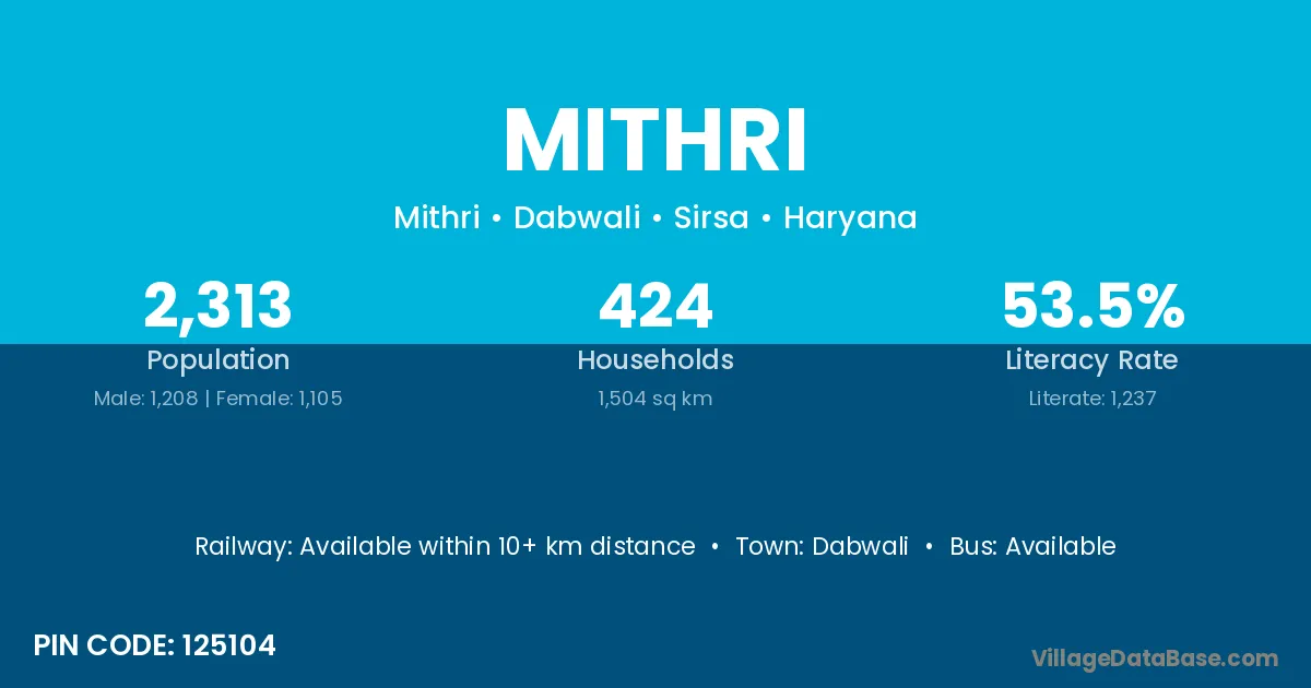 Dabwali is the nearest town to Mithri village for major economic activities