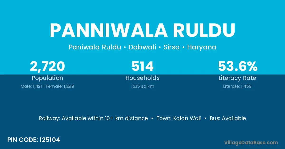 Panniwala Ruldu village has a total population of 2,720 people, of which 1,421 are males and 1,299 are females.