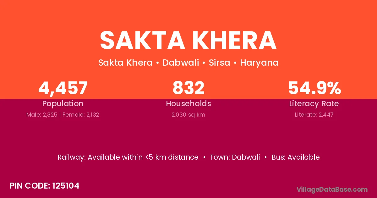 Dabwali is the nearest town to Sakta Khera village for major economic activities