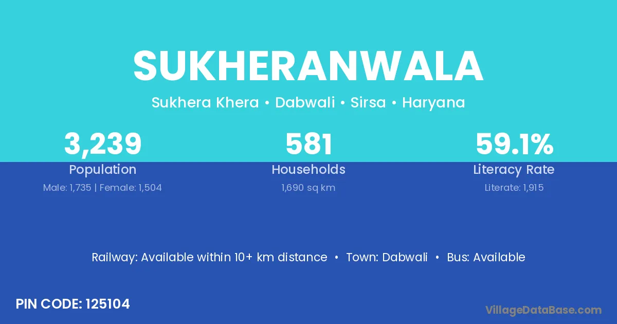 Dabwali is the nearest town to Sukheranwala village for major economic activities