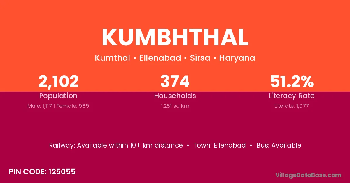 According to Census 2011 information, the village code of Kumbhthal village is 125055.