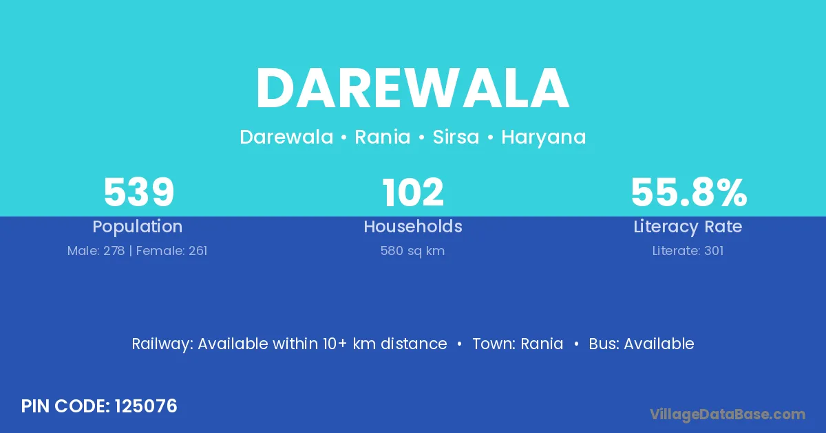 Darewala village has a total population of 539 people, of which 278 are males and 261 are females.