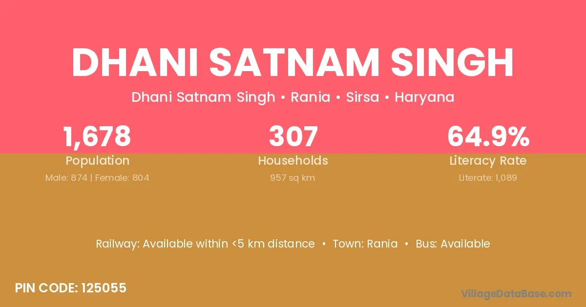 Rania is the nearest town to Dhani Satnam Singh village for major economic activities
