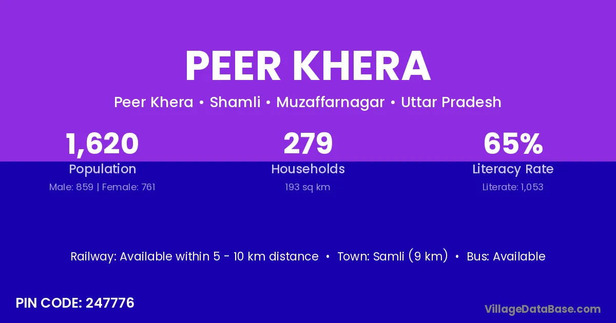 The literacy rate of Peer Khera village is 60.61%. Male literacy stands at 71.10% and female literacy at 48.18%.