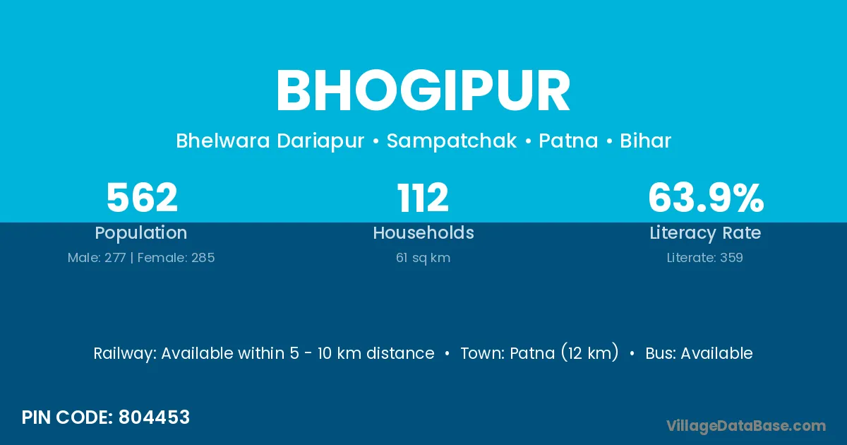 The literacy rate of Bhogipur village is 71.22%. Male literacy stands at 78.75% and female literacy at 62.25%.