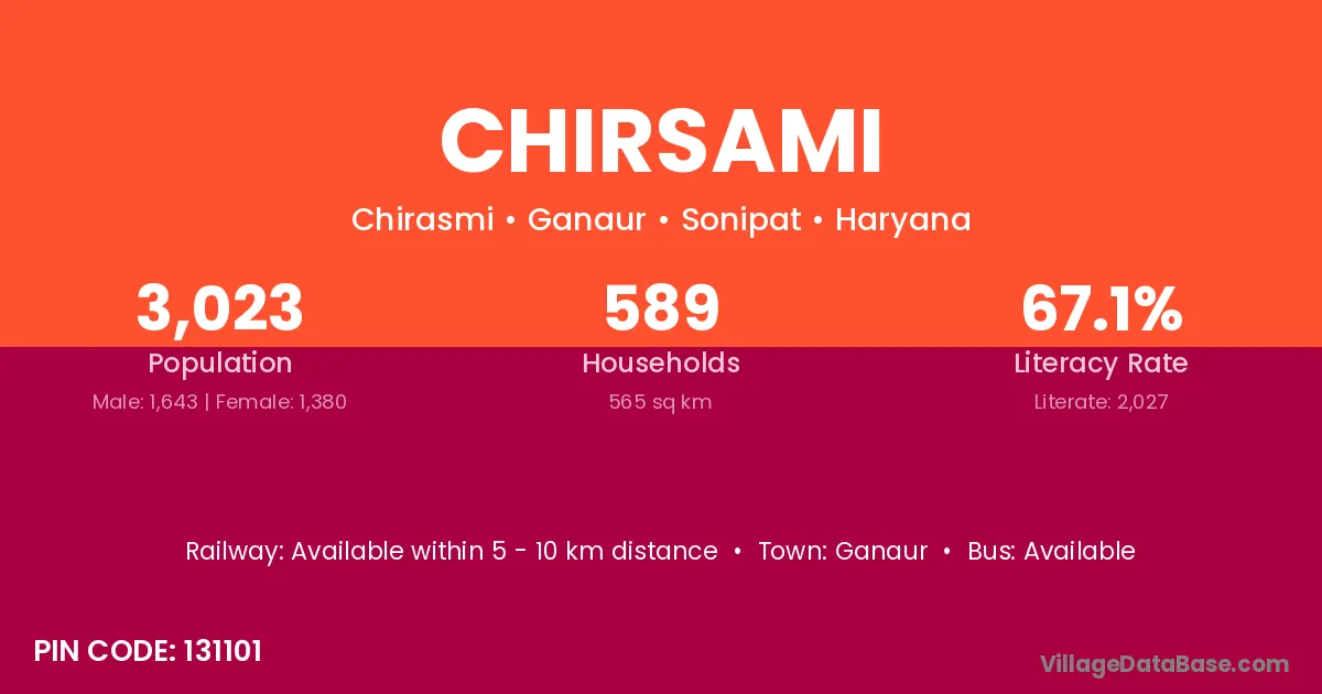 According to Census 2011 information, the village code of Chirsami village is 131101.