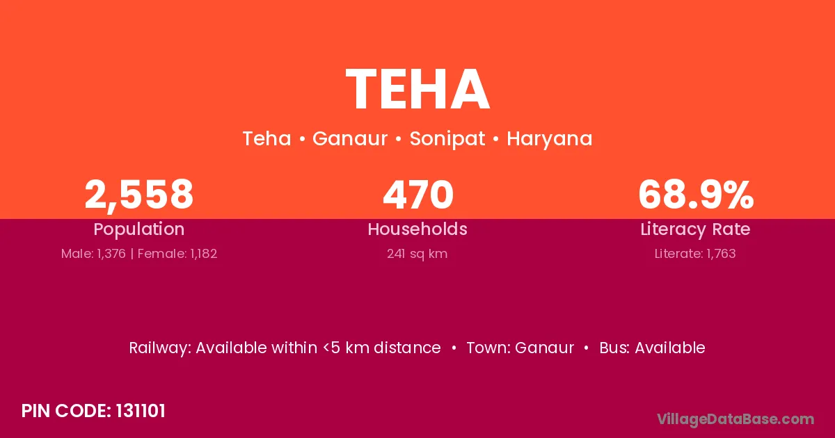 Ganaur is the nearest town to Teha village for major economic activities