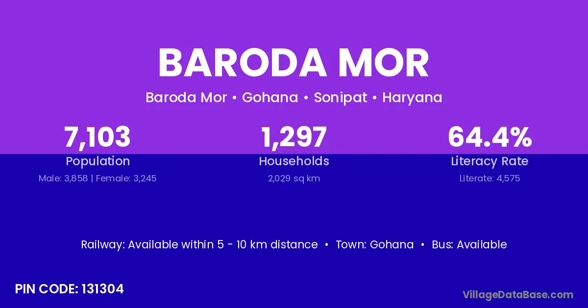 Gohana is the nearest town to Baroda Mor village for major economic activities
