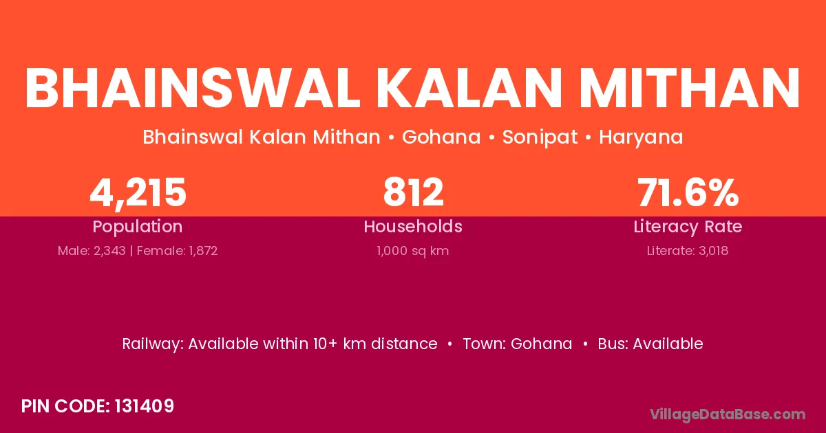 Gohana is the nearest town to Bhainswal Kalan Mithan village for major economic activities