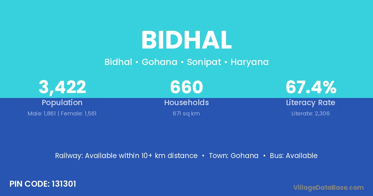 Gohana is the nearest town to Bidhal village for major economic activities