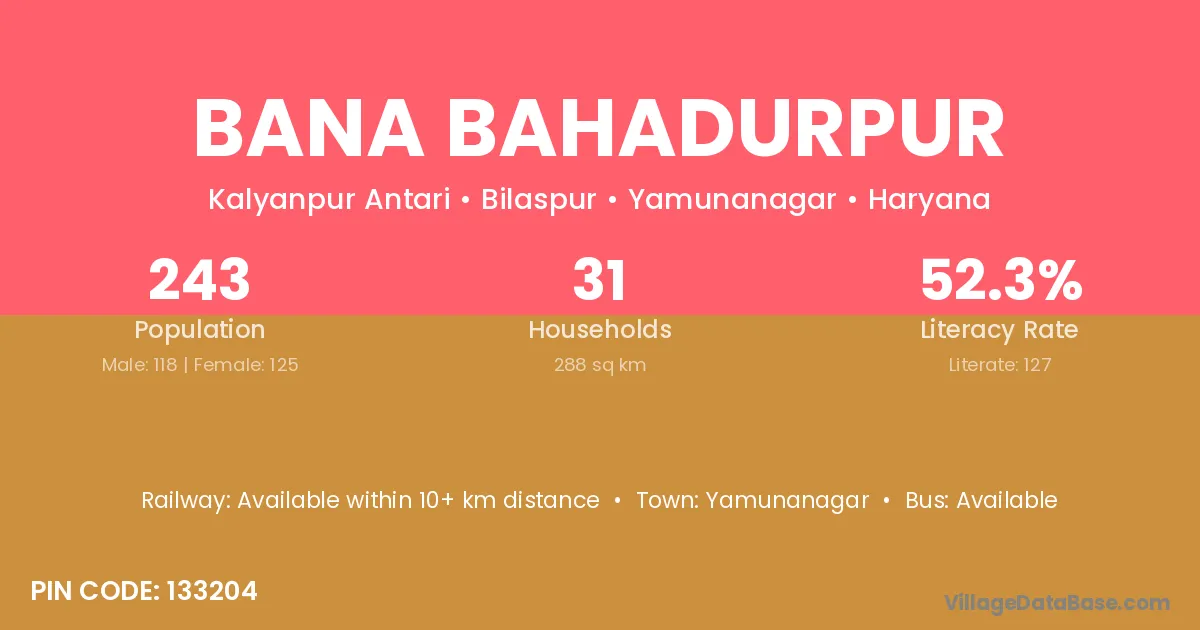 Bana Bahadurpur village has a total population of 243 people, of which 118 are males and 125 are females.