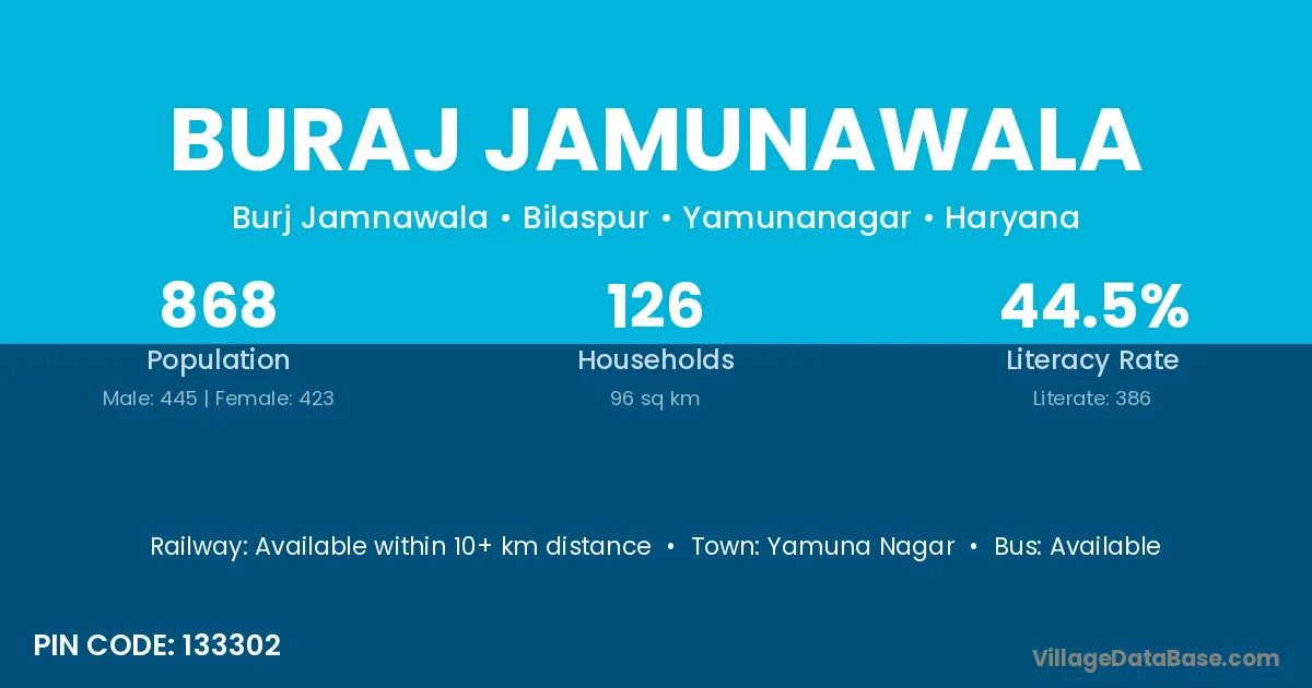 According to Census 2011 information, the village code of Buraj Jamunawala village is 133302.
