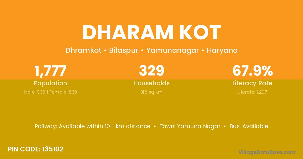 Yamuna Nagar is the nearest town to Dharam Kot village for major economic activities