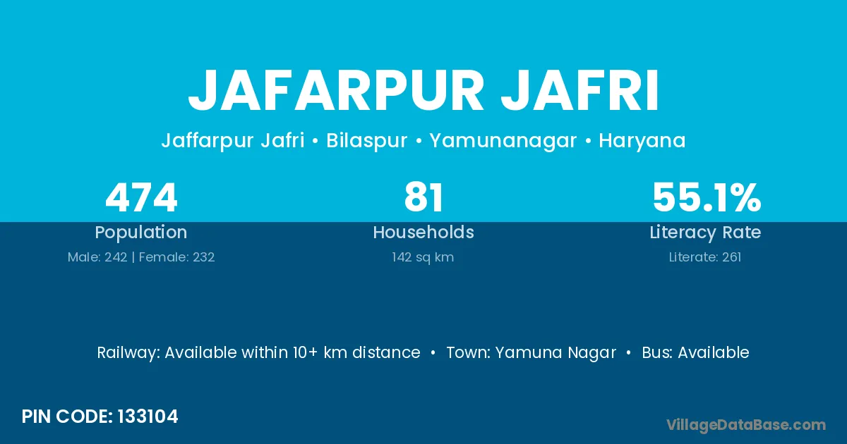 Jafarpur Jafri village has a total population of 474 people, of which 242 are males and 232 are females.