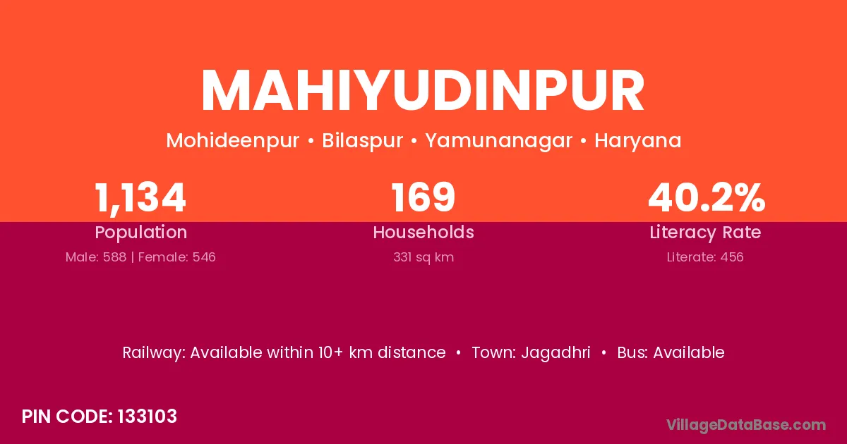 Jagadhri is the nearest town to Mahiyudinpur village for major economic activities