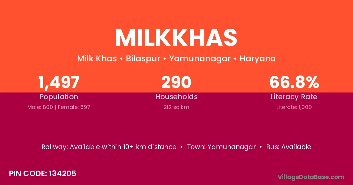 Yamunanagar is the nearest town to Milkkhas village for major economic activities