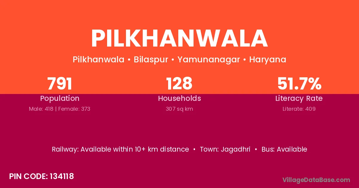 Jagadhri is the nearest town to Pilkhanwala village for major economic activities