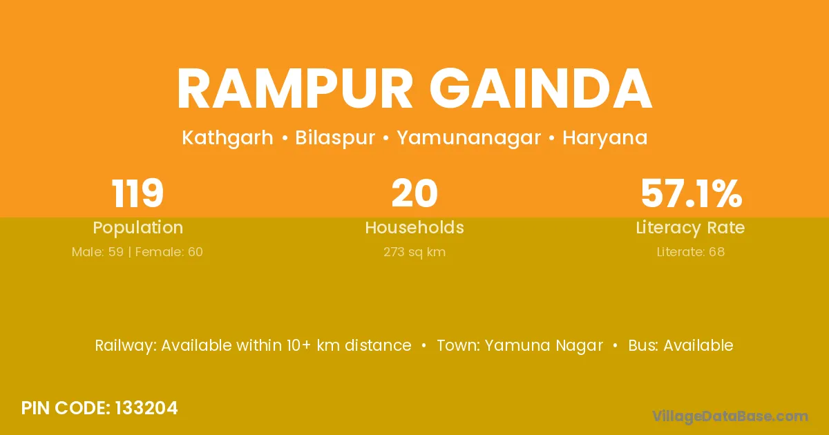Rampur Gainda village has a total population of 119 people, of which 59 are males and 60 are females.