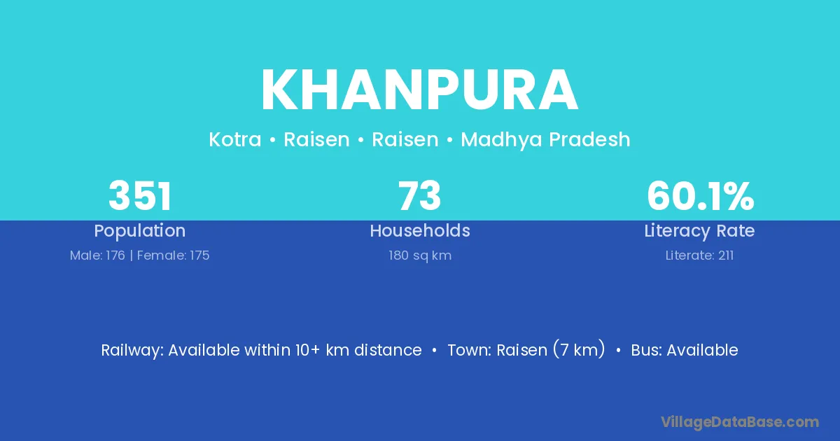The literacy rate of Khanpura village is 65.46%. Male literacy stands at 71.14% and female literacy at 58.82%.