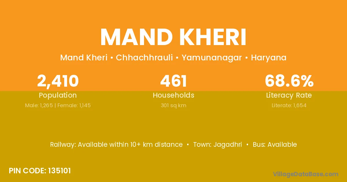 Jagadhri is the nearest town to Mand Kheri village for major economic activities