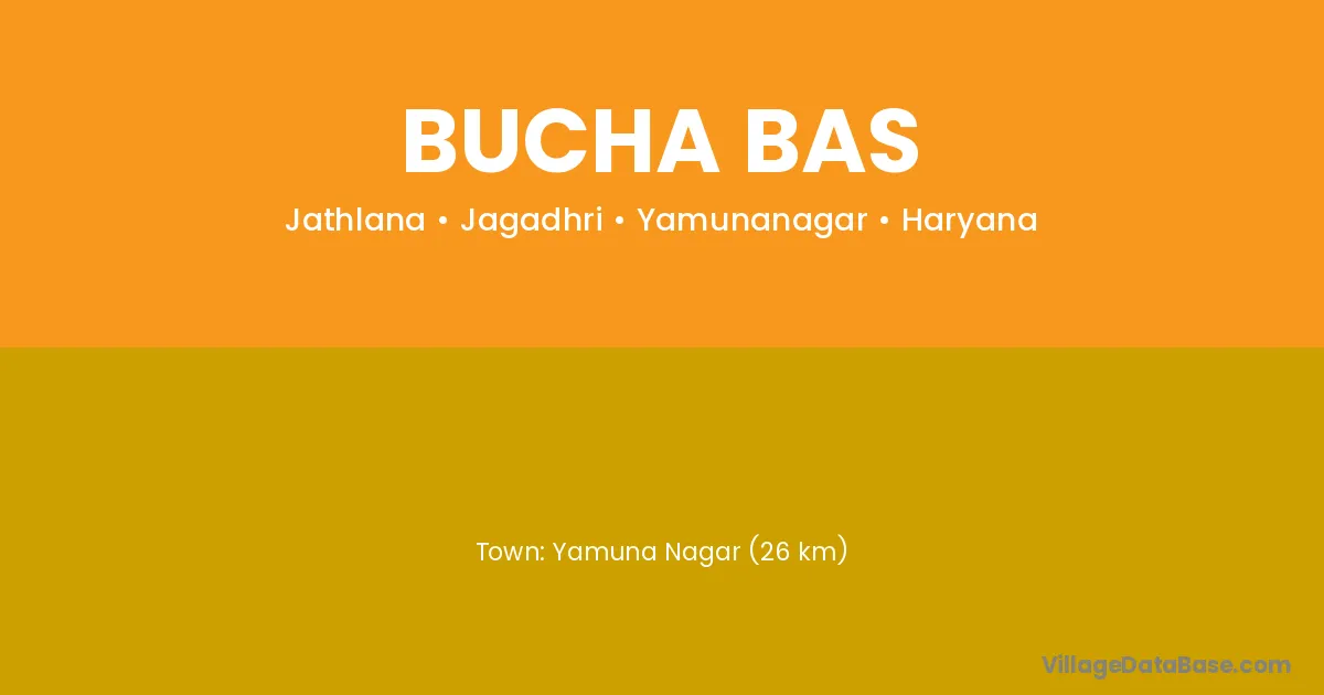 Yamuna Nagar (26 km) is the nearest town to Bucha Bas village for major economic activities and is located approximately 26 km away.