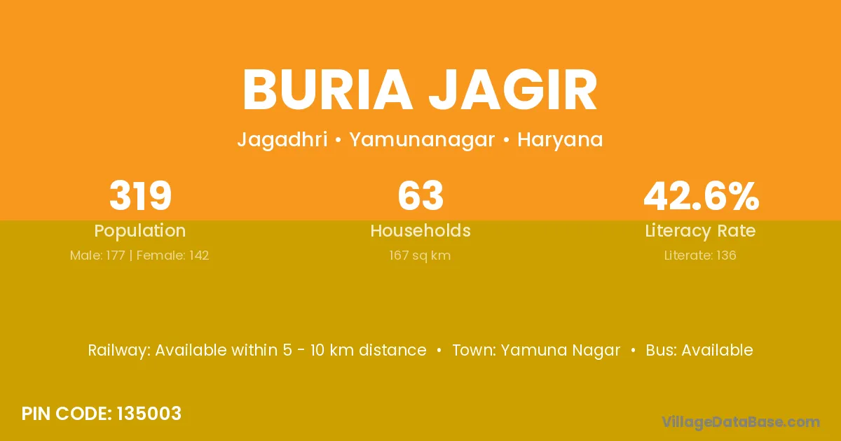 Yamuna Nagar is the nearest town to Buria Jagir village for major economic activities