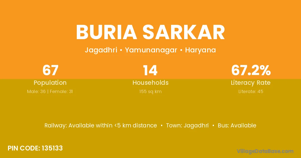 Jagadhri is the nearest town to Buria Sarkar village for major economic activities