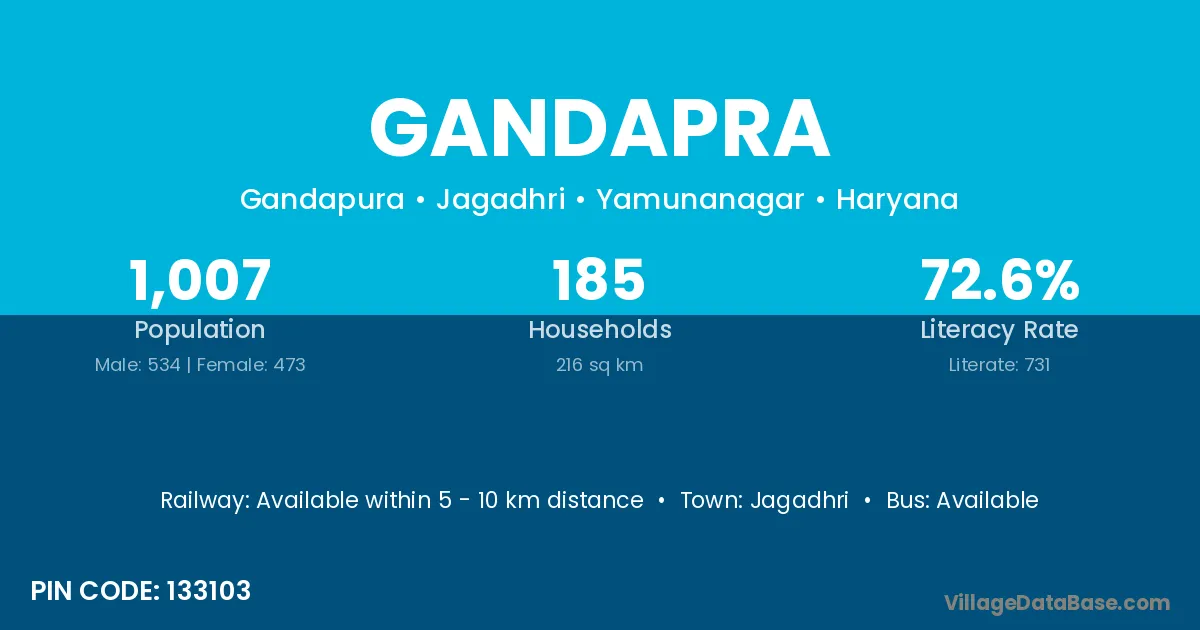Jagadhri is the nearest town to Gandapra village for major economic activities