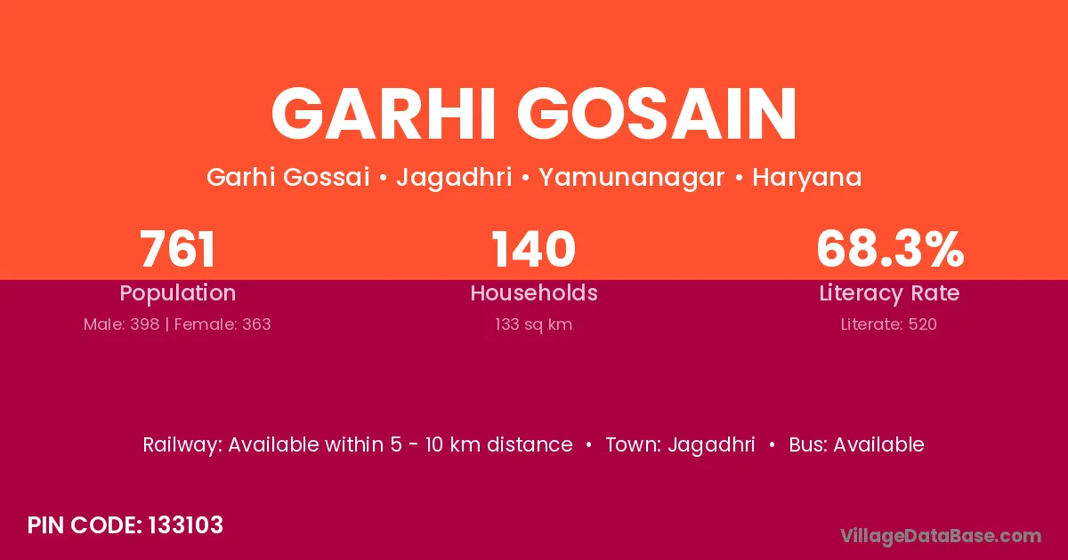 Garhi Gosain village has a total population of 761 people, of which 398 are males and 363 are females.