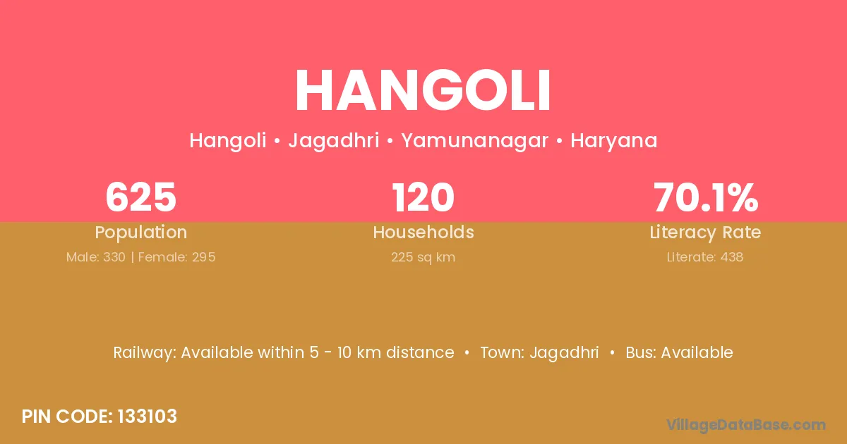 Hangoli village has a total population of 625 people, of which 330 are males and 295 are females.