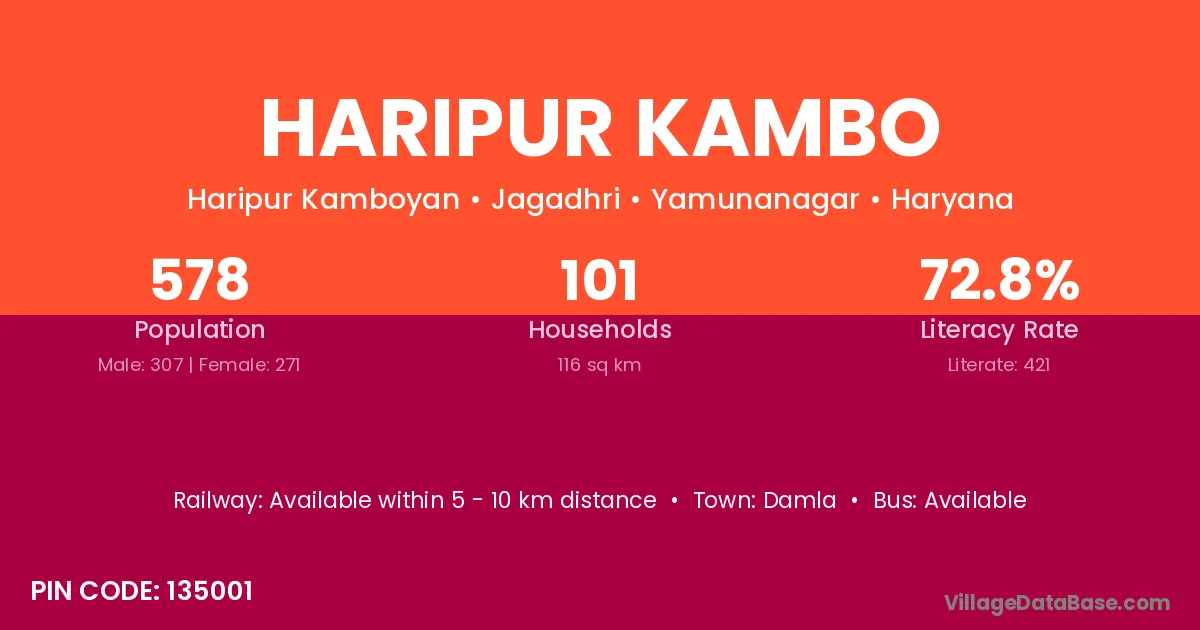 Haripur Kambo village has a total population of 578 people, of which 307 are males and 271 are females.
