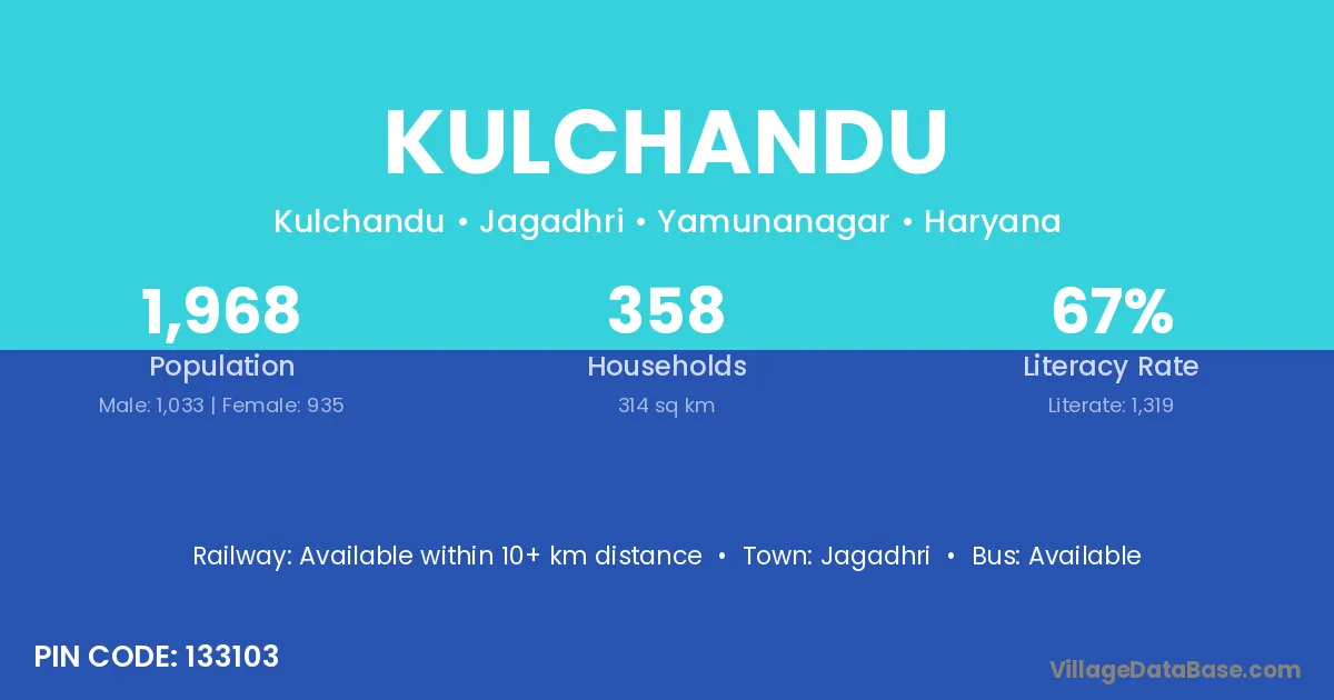 Jagadhri is the nearest town to Kulchandu village for major economic activities