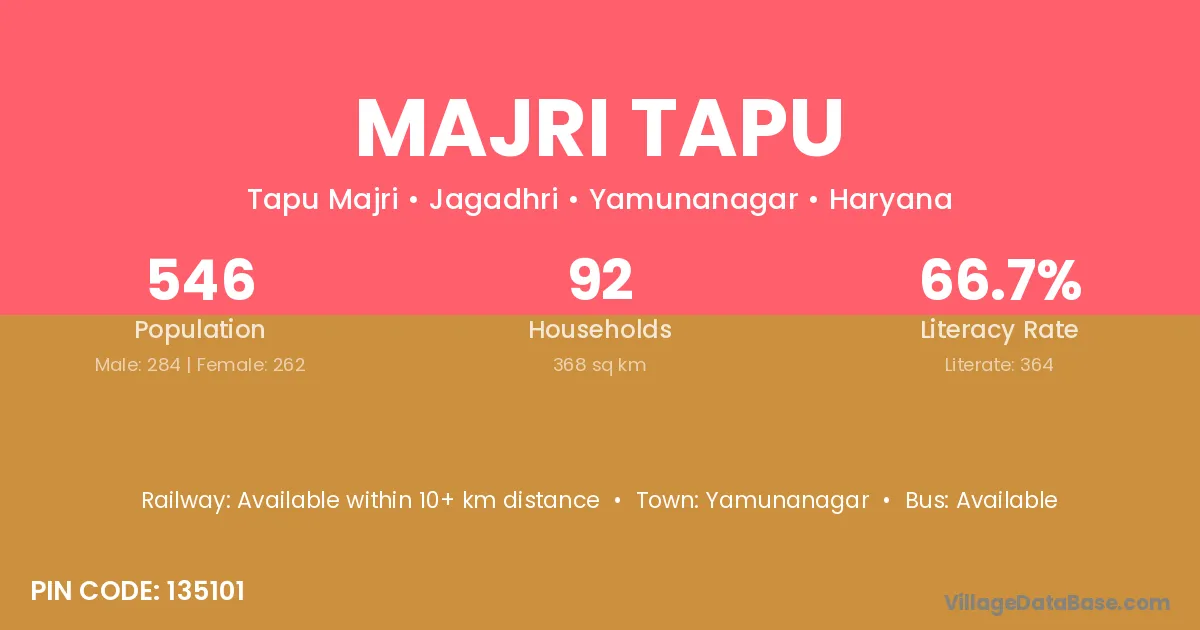 Yamunanagar is the nearest town to Majri Tapu village for major economic activities