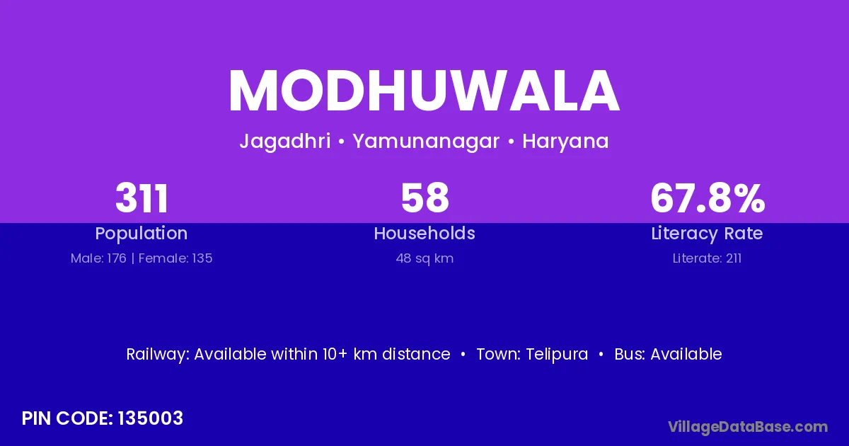 Modhuwala village has a total population of 311 people, of which 176 are males and 135 are females.