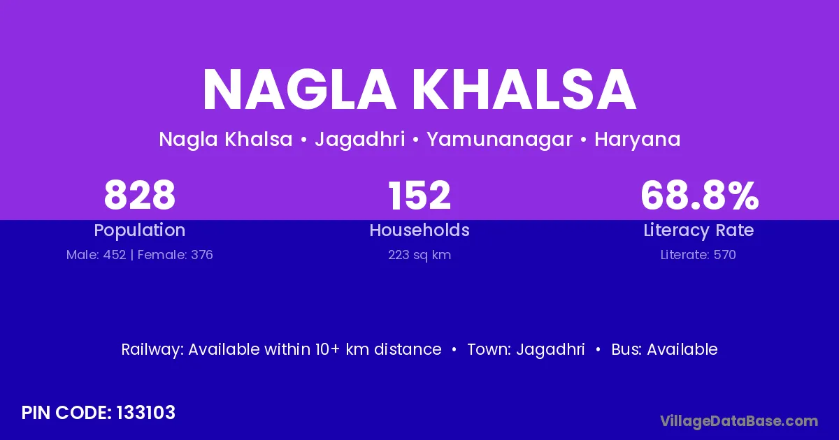Jagadhri is the nearest town to Nagla Khalsa village for major economic activities