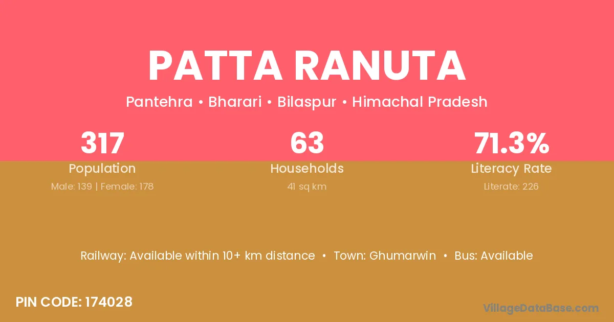Patta Ranuta village is located in the Bharari Tehsil of the Bilaspur district in Himachal Pradesh .